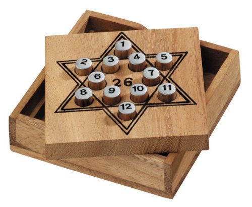 Like math This difficult math puzzle is made for you Your object is to position the numbered pegs within the star so that each column row and diagonal adds up to 26 Additional constraint for the expert puzzler the inner ring should also add up to 26 Includes a wooden box a cover and 12 number Read More..