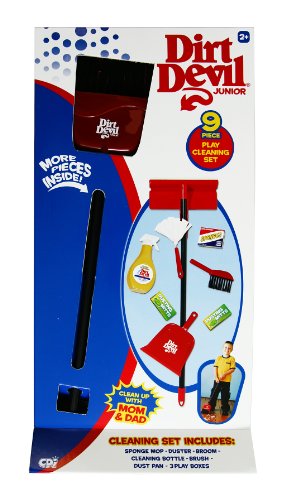 Realistic looking cleaning tools Set includes sponge mop duster broom scrub brush 2 cleaning bottles brush dust pan and 2 play boxes A classic play pattern that kids love Read More..